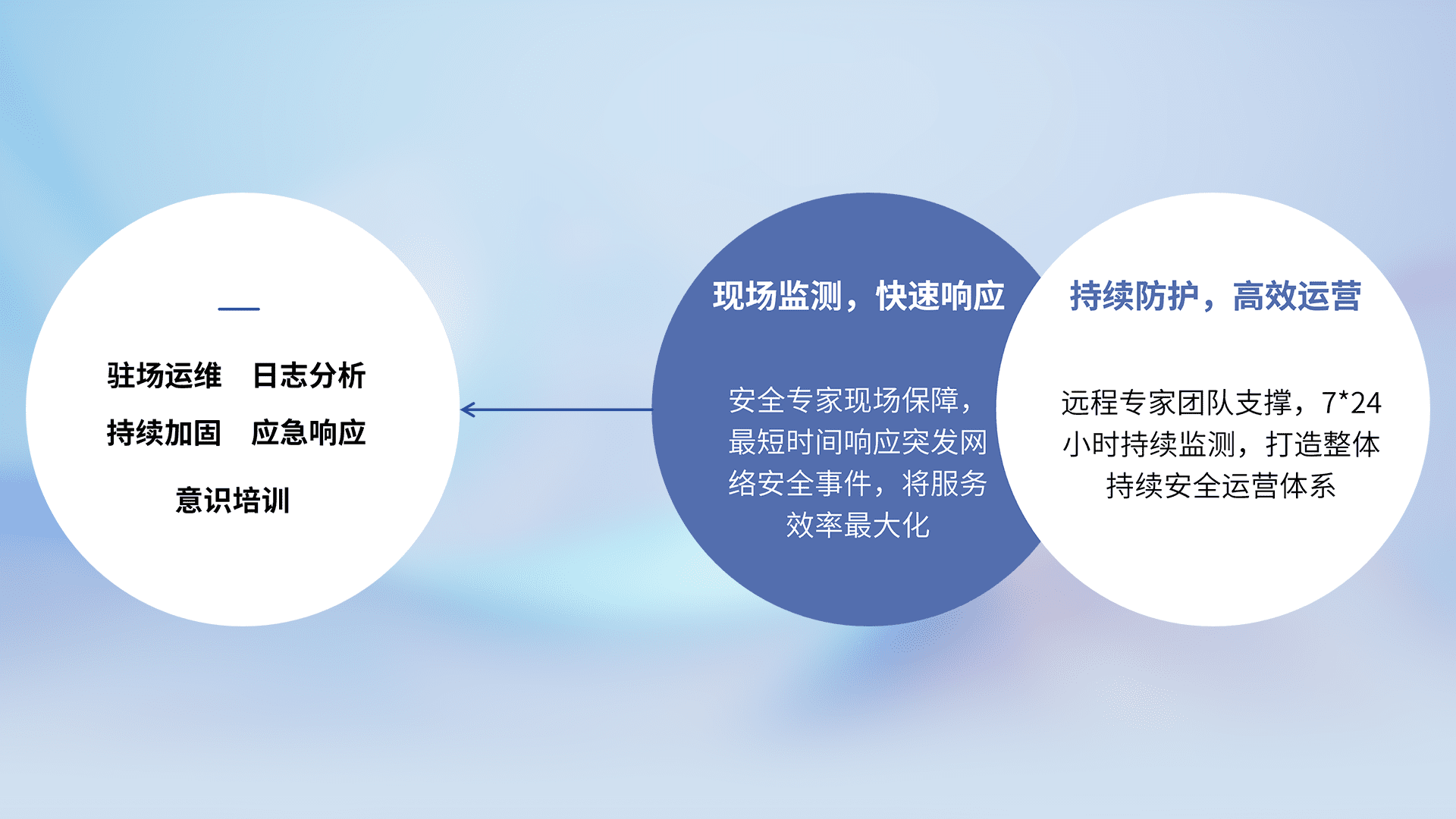 7X24小时持续监测安全事件,保持安全策略有效性,降低资产脆弱性风险,,精准拦截黑客攻击,,,减少被黑客利用的机会,,第一时间遏制,,,降低损失。。。。